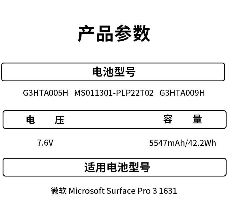 适用微软 Microsoft Surface Pro 3 1631 G3HTA005H G3HTA009H MS011301-PLP22T02 笔记本电脑电池