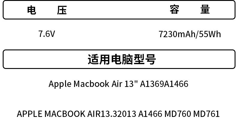 适用苹果MacBook Air 13.3寸 A1466 A1369 MD231 MC965 电脑 A1405 A1496 A1377 笔记本电池